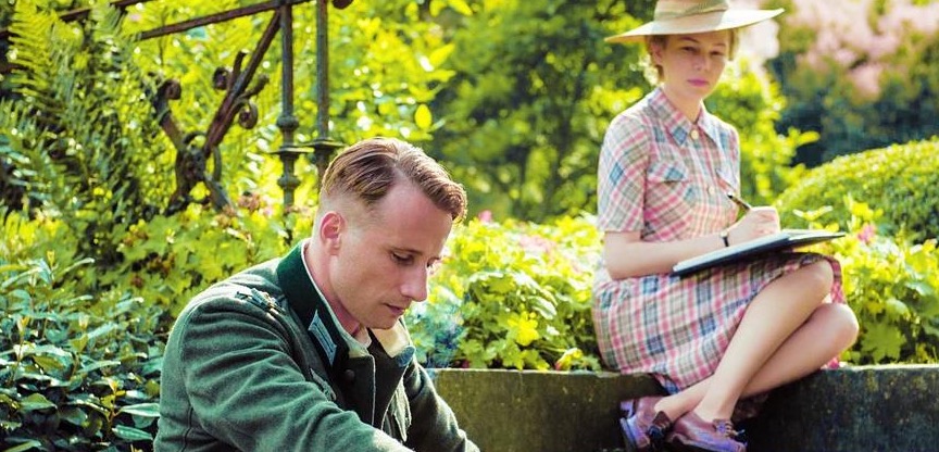 電影中,唯一讓我感受到“電影性”的鏡頭,是布魯諾將他創作的一組音符抄寫在信箋上,送給露西爾。當露西爾打開蝴蝶結禮盒,特寫鏡頭推近至這段手寫的哥特式音符時,我的大腦里閃過一陣戰栗。然而,客觀地說,這一幕相比于原著,仍略顯輕浮,它太像一個調情,從而損失了電影的沉重感。