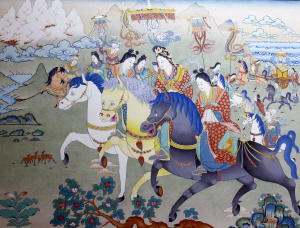 唐卡藝術是藏族特色藝術之一,其繪制程序復雜,包括制作畫布、構圖起稿、著色染色、勾線定型、鋪金描銀、開眼、縫裱等一整套工藝程序。它不僅體現(xiàn)了藏族的繪畫技法,也呈現(xiàn)了其他民族繪畫藝術的特點,是多民族文化交流借鑒的繪畫藝術成果。