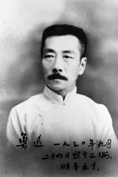1903年攝于日本。這張照片被稱為“斷發照”,是現存最早的魯迅單人照。魯迅在弘文學院剪辮后,拍照留念,并贈與同學兼同鄉友人許壽裳一張。許壽裳稱魯迅贈與照片同時,還贈七言詩一首與他,“靈臺無計逃神矢,風雨如磐暗故園。 寄意寒星荃不察,我以我血薦軒轅。”魯迅去世后,許壽裳在回憶錄中將這首詩定名為《自題小像》。魯迅一生很看重這張照片,多次將其洗印贈友。