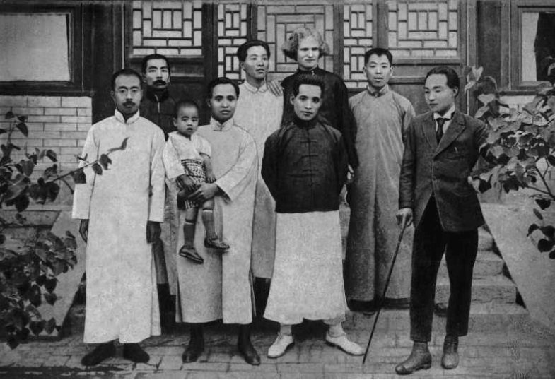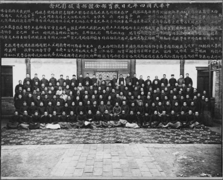 1917年1月26日攝于北京。圖為京師圖書館新館開館紀念合影。第二排左起第五人為魯迅,第一排左起第五人為時任北京大學校長蔡元培,第二排左起第四人為時任社會教育司司長夏曾佑。