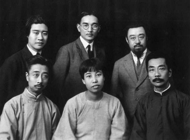 1927年10月4日攝于上海。魯迅到達上海與親朋好友合影。魯迅當日日記中記載:“午前伏園、春臺來,并邀三弟及廣平至言茂源午飯,玉堂亦至,下午六人同照相。”前排右起:魯迅、許廣平、周建人;后排右起:孫伏園、林語堂、孫福熙。值得一提的是,魯迅與林語堂原為好友,后交惡。在1977年文物出版社出版的《魯迅》照片集中,林語堂被抹掉了。在這張照片中,孫福熙與林語堂一同被抹掉。此外,林語堂還在另外兩張照片上也被抹去。