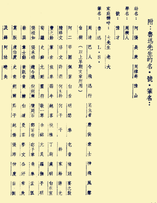 1937年魯迅紀念委員會編《魯迅先生紀念集》中,從幼名、學名、號、家庭稱呼、筆名等幾個方面對魯迅先生的稱謂進行了整理。