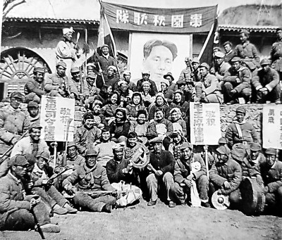 一九四四年棗園秧歌隊(棗園文工團)全體合影。圖片為資料照片