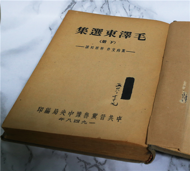 1942年,在抗日戰爭的艱苦歲月,毛澤東同志發表《在延安文藝座談會上的講話》,1943年10月19日,講話在《解放日報》上全文發表。最近,我在整理作家魯藜同志的作品時,發現了一本魯藜同志珍藏的1948年中共晉冀魯豫中央局編印的《毛澤東選集》,書中載錄了《講話》全文。