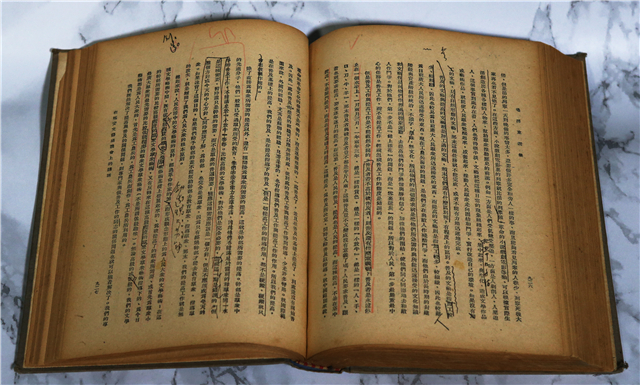 經過和魯藜家屬的求證,該書是魯藜同志當年在延安時期閱讀過的。書的扉頁上,還留有魯藜的簽名和時間。文革時,是魯藜自己把扉頁上的簽名勾掉。《講話》一篇中,還清晰地保留著當年魯藜閱讀和學習過的痕跡。魯藜同志把《講話》當作了自己創作奮進的一面旗幟,一生堅持著走中國革命的文藝道路。