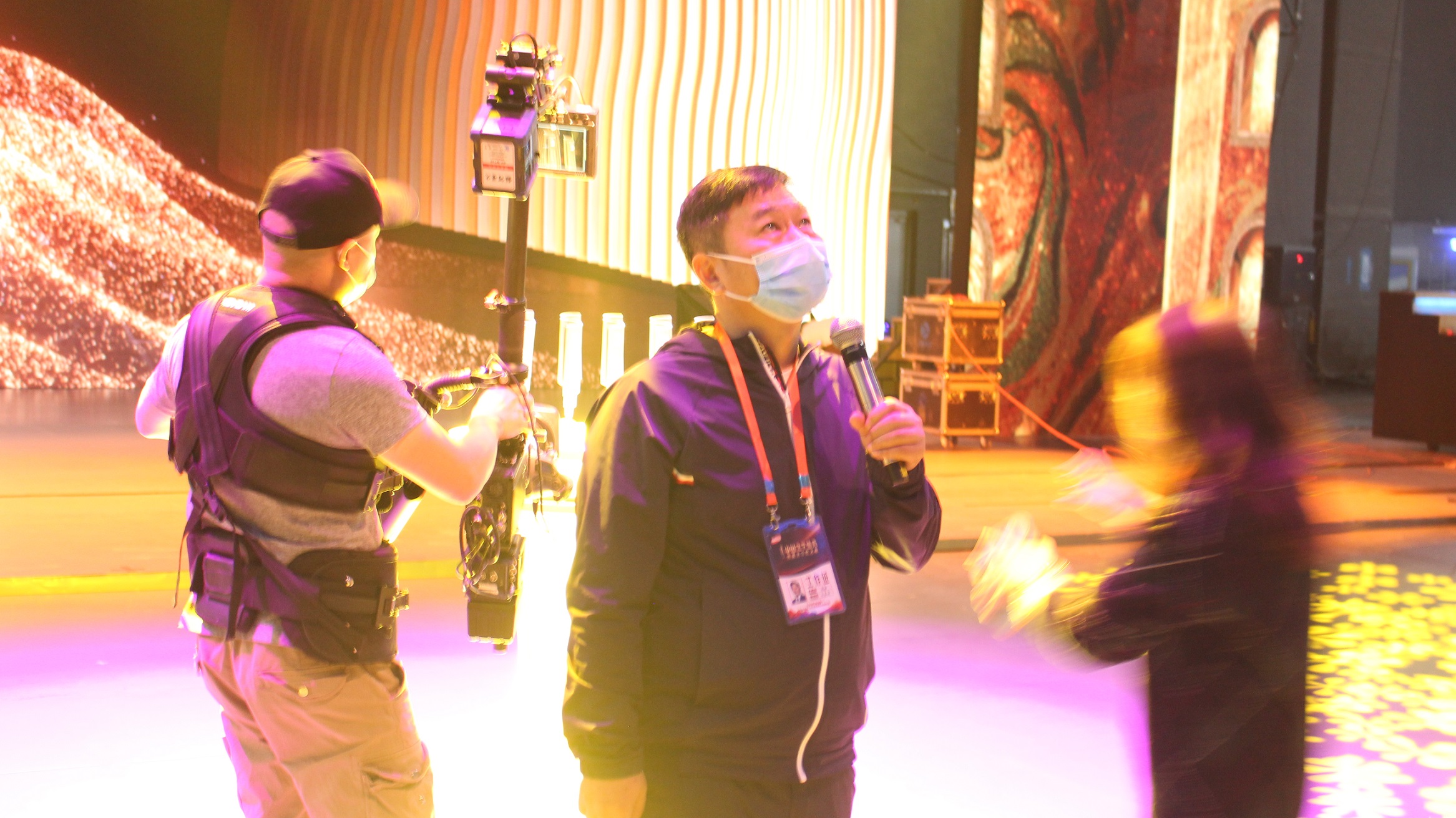 周雄:這次文學盛典從策劃到執行,時間是最大的敵人之一,我們一直在與時間賽跑。因為時間緊,所以各方面的配備、磨合這種原本要耗費大量時間的環節都在壓縮。每一分、每一秒,對我們來說都很珍貴。舉個例子,為了搶時間,晚會走臺彩排和硬件調整交替進行。我們的直播場地在中央歌劇院劇場,那里是專業劇院而非演播廳,舞臺機械等控制裝置頻繁使用,需要和表演類節目、頒獎流程默契配合,無縫連接。節目組進場第二天,就開始合成排練,技術、傳輸、生產中臺各工種協同相關合作方,結合首次排練情況,通宵對晚會的舞臺、屏幕、機械裝置、數控等硬件進行調整優化,并對重點環節進行反復演練。除了時間,節目組異地工作也是一大挑戰,很幸運的是我們有強大的合作伙伴,北京電視臺從技術裝備、專業隊伍等方面,對活動給予了寶貴的專業支持,讓盛典的工作得以順利進行。