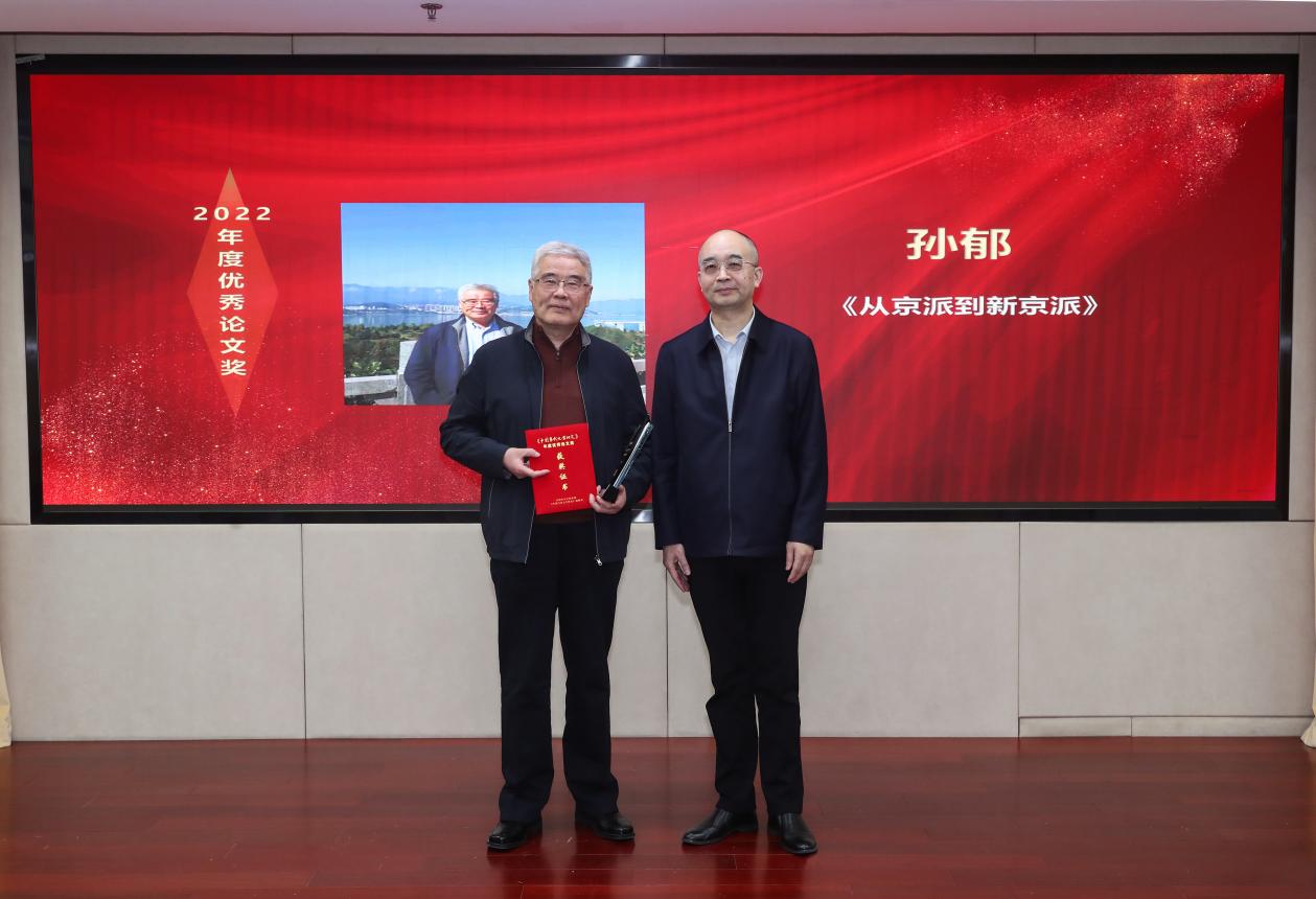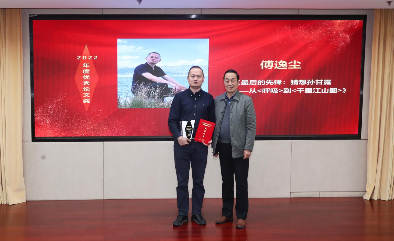 中國作協黨組成員、副主席、書記處書記吳義勤為獲獎者孫郁頒獎