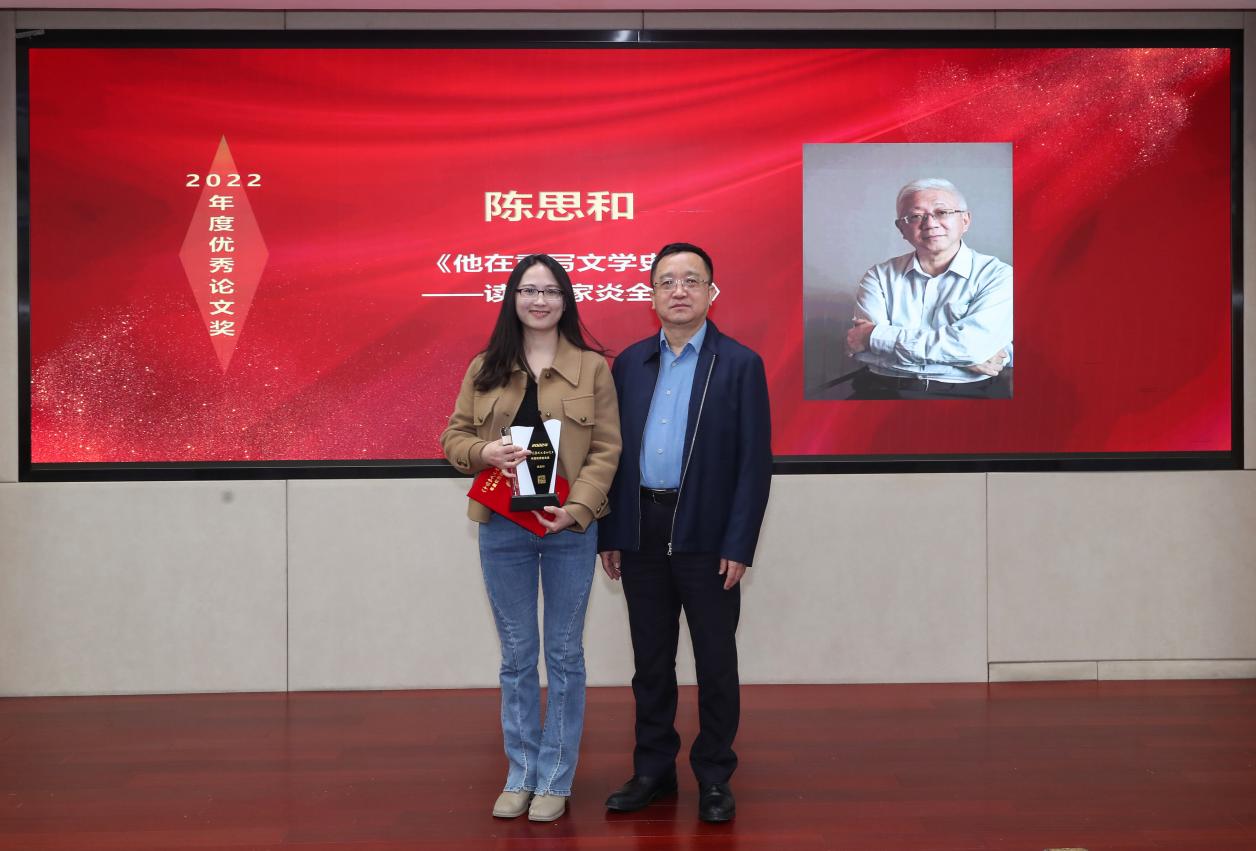 全國政協文史委副主任、中國作協副主席閻晶明為獲獎者陳思和(鐘媛代領)頒獎