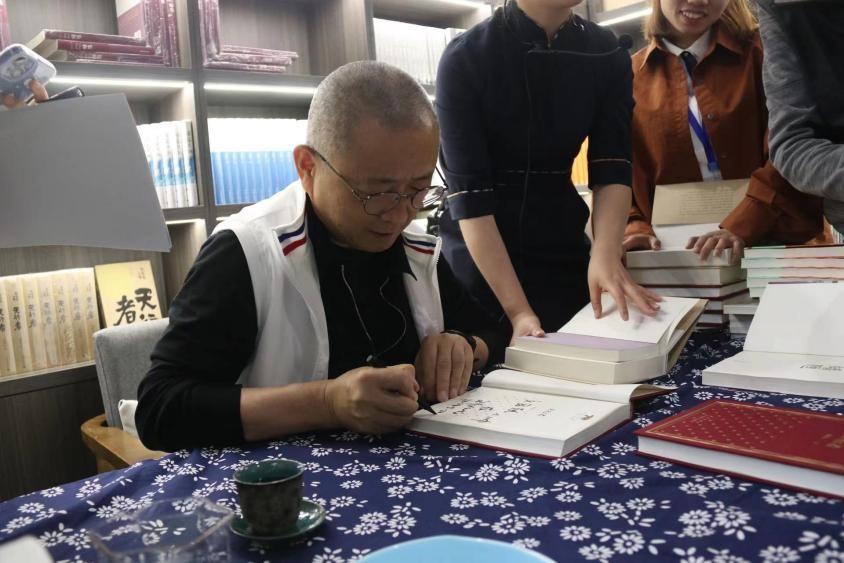 在劉醒龍作家書屋,湖北省文聯(lián)主席劉醒龍與文學(xué)愛好者親切互動(dòng),簽名、座談、合影,“文約清溪”活動(dòng)現(xiàn)場(chǎng)氣氛熱烈。“我非常喜歡您寫的《抱著父親回故鄉(xiāng)》,文字觸動(dòng)人心,讓我也萌發(fā)了寫寫父親的念頭。”“《鳳凰琴》我看過很多遍,升國(guó)旗用笛子來伴奏,這個(gè)畫面深深刻在了我的腦海里。”文學(xué)愛好者爭(zhēng)相與劉醒龍交流。劉醒龍微笑傾聽,不時(shí)與大家交流寫作心得,或耐心回答大家的問題。