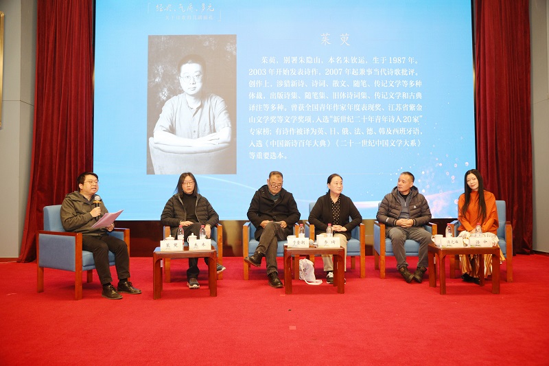 2023年度揚子江筆會以“經典、氣質、多元——關于詩歌的幾副面孔”為主題,活動由詩人、評論家茱萸主持,著名詩人、詩評家朱朱、于奎潮、李琦、傅元峰、語傘從各自角度展開對談,對詩歌的多重面孔進行了多重呈現。