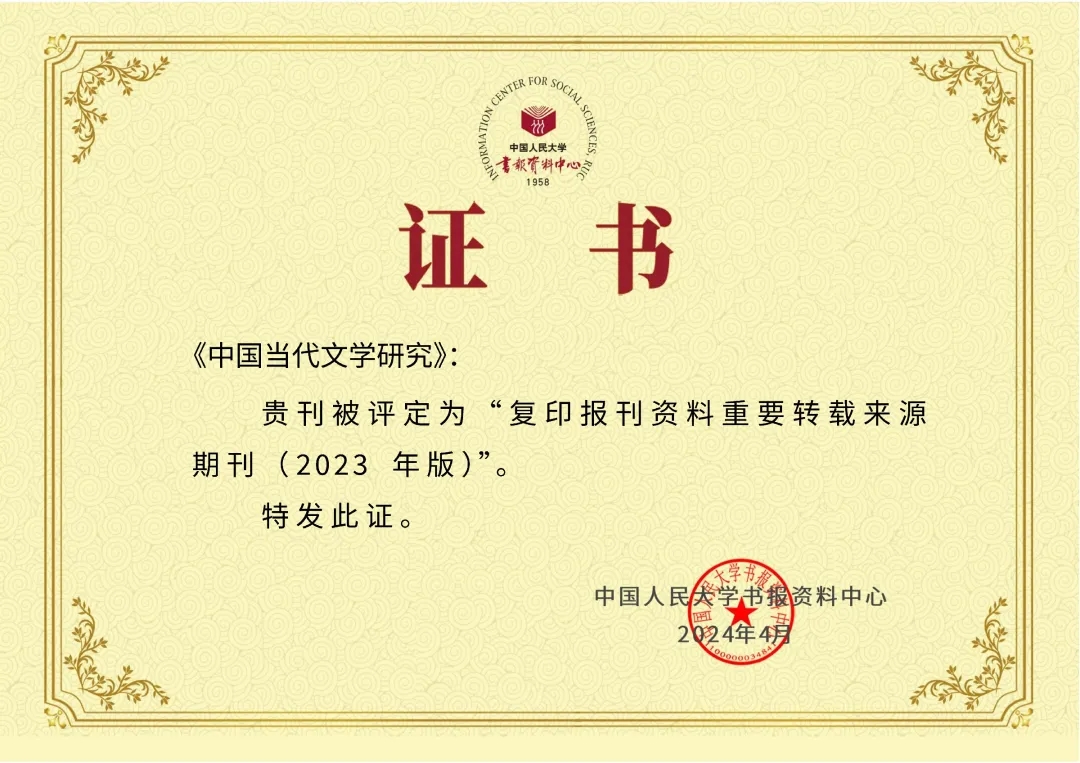 《中國當(dāng)代文學(xué)研究》入選“復(fù)印報(bào)刊資料重要轉(zhuǎn)載來源期刊(2023年版)”