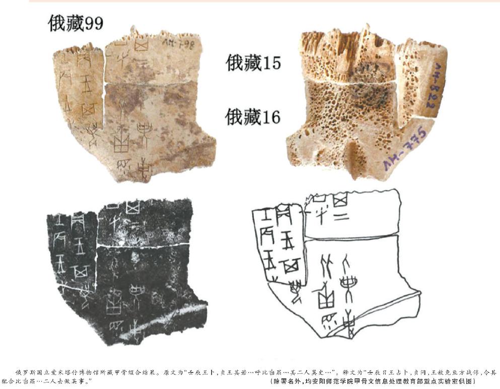 近年來,安陽師范學院甲骨文信息處理教育部重點實驗室利用計算機綴合甲骨碎片圖像70余組,位列全國第一。其中一組綴合后形成了新的連貫文辭,如果釋讀無誤的話,這句話可能記錄了公元前1900多年的一次日偏食天象。這引起人們的極大關注。
