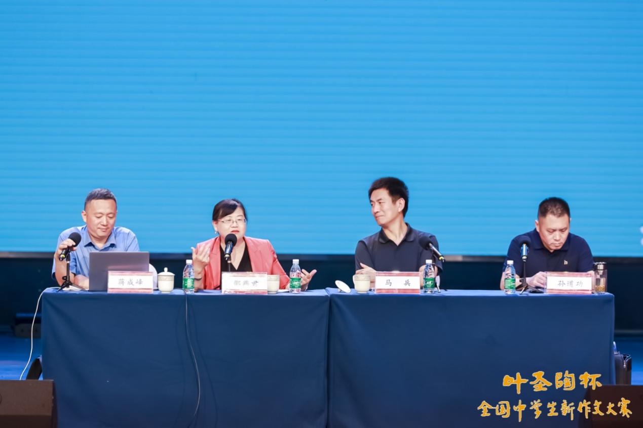 頒獎典禮現場文學氣息濃郁,在熱烈的掌聲中步步推向高潮。最后,大賽組委會主任白燁宣布第21屆勝利閉幕、第22屆啟動,曹文軒、吳思敬、賀紹俊、陳福民、顧之川、葉小沫等領導專家共同打開啟動按鈕,葉圣陶杯大賽在文學的“草房子”又開啟了新的路程,未來的新苗在肥沃的文學土壤里拔節生長。