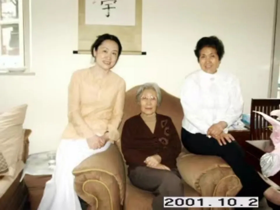 2001年在上海拜訪穆時英妹妹穆麗娟先生。右一,穆麗娟與戴望舒女兒戴詠素女史