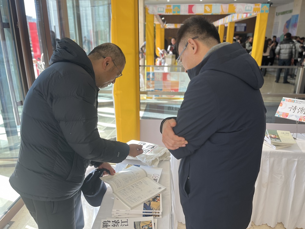 啟動儀式后,嘉賓們來到熱鬧的文學市集。文學市集由主舞臺區、文學圖書展區、文學期刊展區、文創非遺區與讀者互動區構成。讀者追著作者求簽名、交流閱讀心得的畫面隨處可見,濃厚的互動氛圍和文藝活力在市集間不斷涌動。