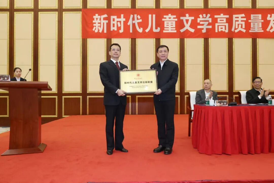 張宏森為中國作家協會新時代兒童文學出版聯盟授牌。曾銳接牌,并宣讀聯盟倡議書。